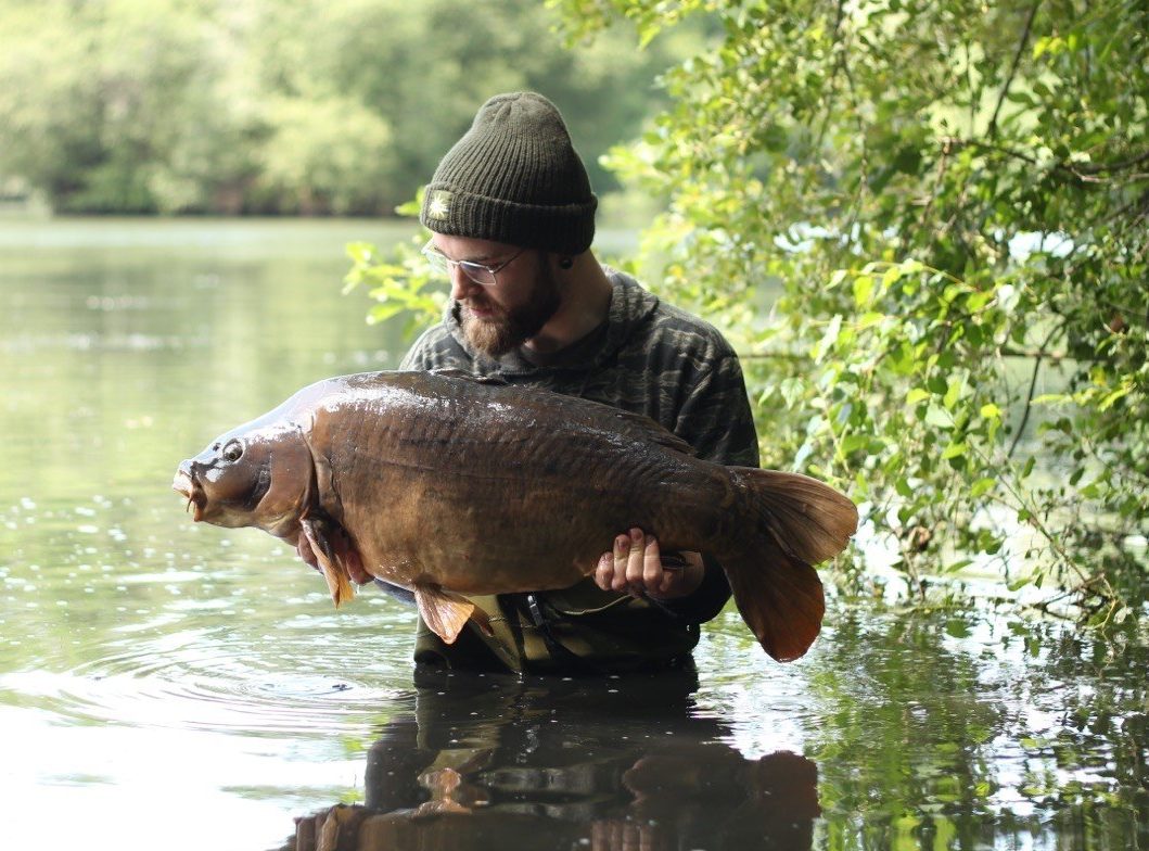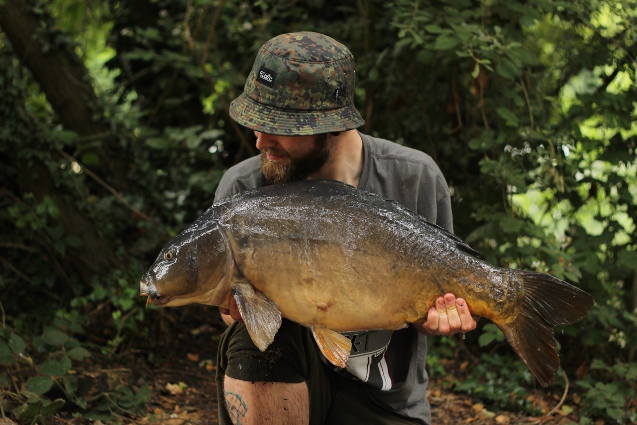 As with the previous night, I received plenty of liners and heard more than a few fish showing in the weed bed behind my rods. I had to wait until almost midday however before I received another take. This time the fish felt much bigger and upon netting it I realised that I’d got a nice old looking mirror in the net. It’s head was really thick set and it was all sucked in and bent up. It pulled the scales round to 28lb although I imagine pre-spawning age was a 30, but I was over the moon none the less. It took me up to eight fish for the season, three more landed than the season before! This was a huge relief considering how terribly mine and more than a few others season had started. My friend Jordan kindly came round and took some lovely photos for me before I slipped the old girl back.