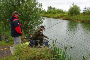 Rob Perkins looks on as Josh Butlin-Sirrs lands a Portland carp 9