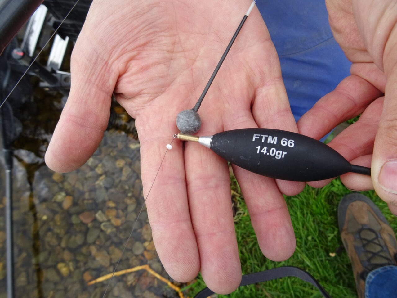 A bead runs on the shocker, blocked by a stopper knot made of 0.17mm mono. The waggler is threaded on the line without any further adapter, which is very important.
