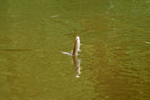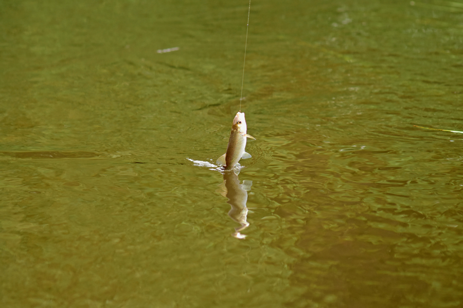 The beauty of the pole is you can swing in little fish before the pike get them!